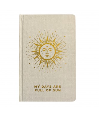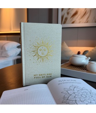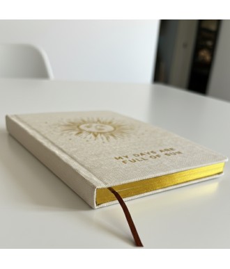 Stylowy Kremowy Dziennik Wdzięczności z napisem „My days are full of Sun” pomoże Ci zatrzymać się na moment i dostrzec to, co rozjaśnia Twoje dni. Subtelna kremowa okładka z klasycznym złotym wykończeniem wprowadza spokój i harmonię, dzięki czemu łatwiej wejść w codzienną refleksję.
